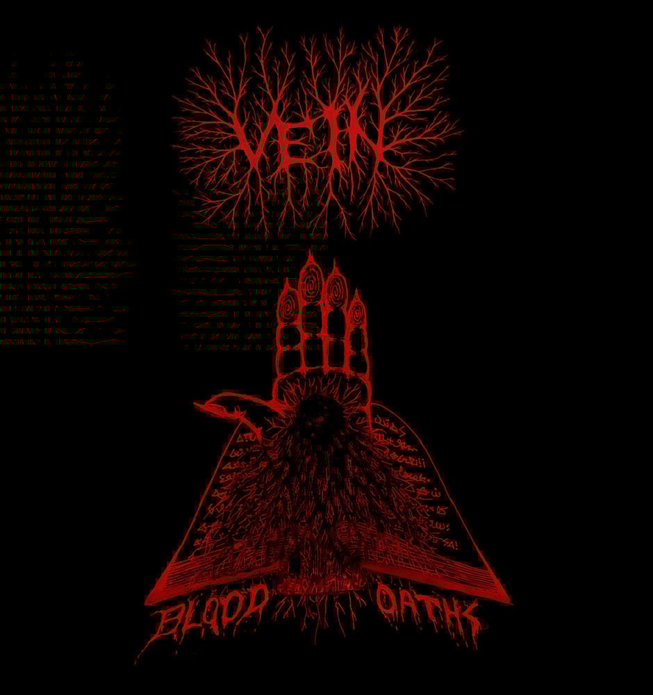 At last, it is here, bearing the ominous title Blood Oaths. Hideous and hulking and massively hypnotic, on first listen do V.E.I.N. here exhibit traits of the bestial black metal idiom: gnawing surge, blood-gurgling intensity, minimal-is-maximal songwriting. Splitting hairs, perhaps, but Blood Oaths bears far more semblance to the old gods VON rather than all those who follow the oath of black blood: incessantly pounding mid-paced blastbeats, hypnotic repetition of simple-yet-powerful motifs, and bestial vocals echoing from the void all get warped and malformed with mesmerizing, malefic ease. Which is all to say that V.E.I.N. seeks the far (and frightening) corners of psychedelic experience, immersing themselves in a delirium of dread and utter madness. So, while Blood Oaths does maintain the martial hammering of so much bestial metal, the lysergic layering of haunting soundbites as well as torched-to-fuck FX brings a kaleidoscopic element into an otherwise-monochromatic artform. Or, perhaps this is the sound of bestial metal at its most smacked-out...
